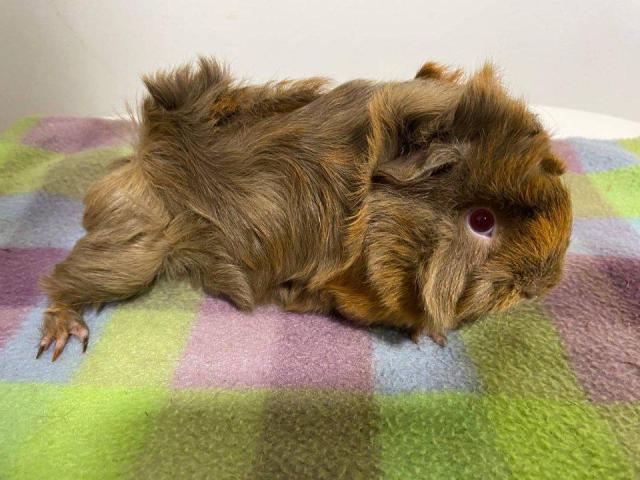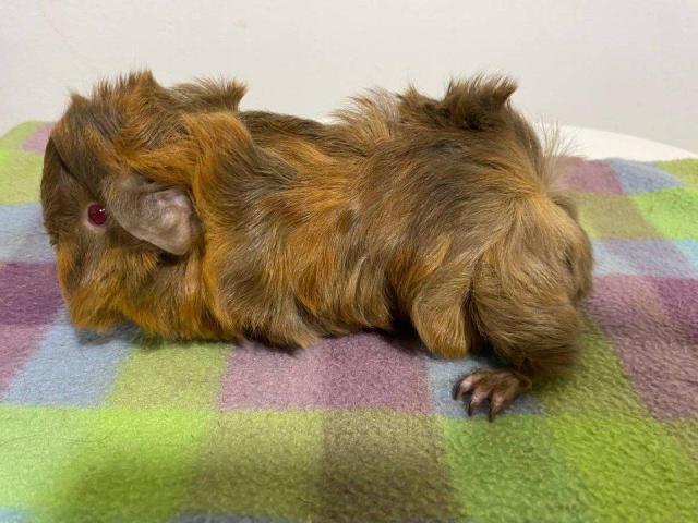 I have two male Peruvian guinea pigs available now. This breed grows long, beautiful hair and will need occasional brushing to keep them looking their best.