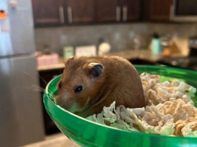 Meet Hannah, an adorable and gentle female teddy bear hamster looking for her forever home! This sweet girl has a wonderful temperament and would make a perfect companion.