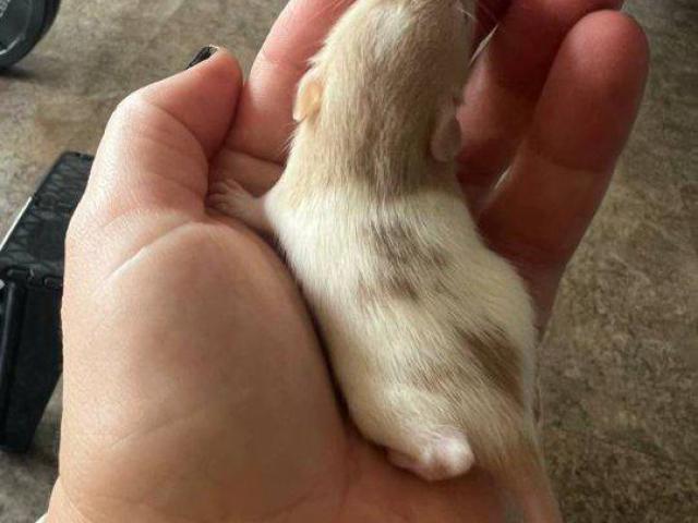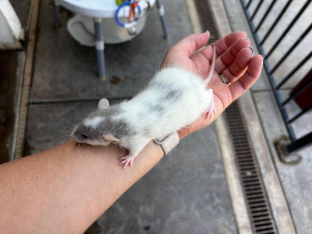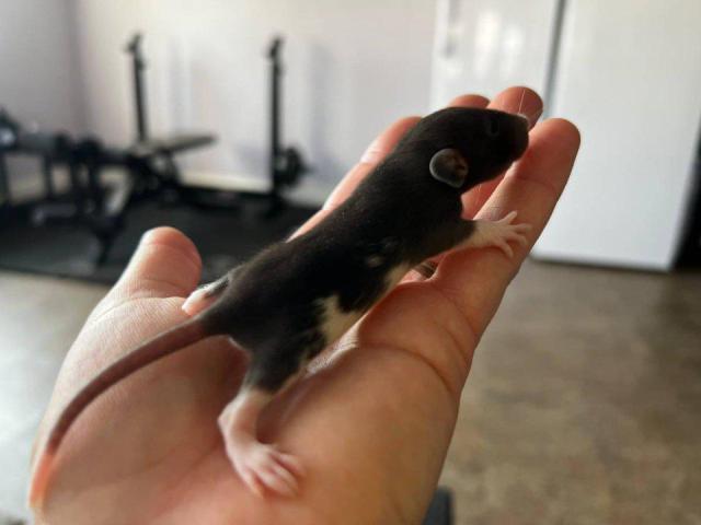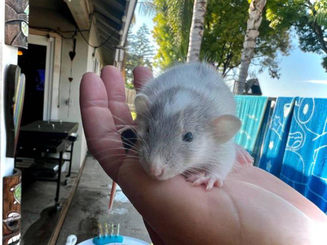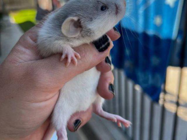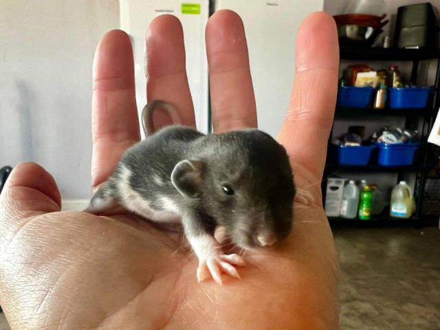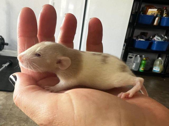 I have 3 sweet and friendly dumbo baby rats available as pets (not for feeders). There is 1 blue hooded male ready to go now, and 2 females—one cream hooded with ruby eyes and one black with white—that will be ready in about a week.